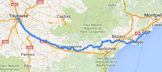 Es war eine schwere Geburt und eine anstrengende Reise, diese Fahrradtour an Teilen des Canal du Midi. (Wer genaueres über den Kanal erfahren will, dem sei der entsprechende Wikipediaeintrag empfohlen. Am Ende dieser Webseite finden sich dazu auch noch einige Ausführungen. ) Der gesamte Kanal führt von Toulouse nach Sète über 240,1; eine Fahrstrecke die uns bei den kryptischen Ausführungen in Radtourenbeschreibungen über den Streckenzustand doch etwas zu lang erschien. Wir haben uns deshalb auf die Teilstrecke Toulouse - Béziers, immerhin ursprünglich 208 km (es wurden dann 220 km), beschränkt. Randbedingungen waren ein sicheren Abstellplatz fürs Auto - am besten in einem Hotel auf dem Land (wir hatten in Südfrankreich schon einige schlechte Erlebnisse) und die Zugfahrt von oder nach Toulouse.