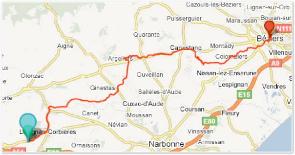 Conilhac-Corbieres - Béziers 70,6 km Radlzeit 5h 4m Gesamt 8h27m ∅ 13,93 km/h
