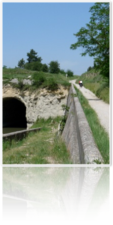 Richtung Oppidum d‘Ensérune. Auf diesem Stück versucht der Kanal mit vielen Windungen auf gleichem Niveau zu bleiben; wir sparten durch diesen Abkürzer einige Kilometer und schonten unser Rückrat. In Poilhes gelangten wir nach einer Steigung wieder an den Kanal, der uns auf passabler Strecke über den Hügel beim Tunnel Malpart - den weiteren Aufstieg zur Oppidum d‘Ensérune. Auf diesem Stück versucht der Kanal mit vielen Windungen auf gleichem Niveau zu bleiben; wir sparten durch diesen Abkürzer einige Kilometer und schonten unser Rückrat. In Poilhes gelangten wir nach einer Steigung wieder an den Kanal, der uns auf passabler Strecke über den Hügel beim Tunnel Malpart - den weiteren Aufstieg zur Oppidum d‘Ensérune schenkten wir uns - zu der berühmten Schleusentreppe mit 8 Kammern von Fonserannes - ein wirklich beeindruckendes Bauwerk - nach Béziers führte. Hier waren zur Innenstadt bis zum Hotel noch mal ca. 60 Höhenmeter zu bewältigen. Anschließend erholten wir uns unter den Platanen der Allee Paul Riquet beim Cremant, auf dem Thea die Radltasche mit Ersatzschlauch und Erste Hilfe Paket geklaut wurde.