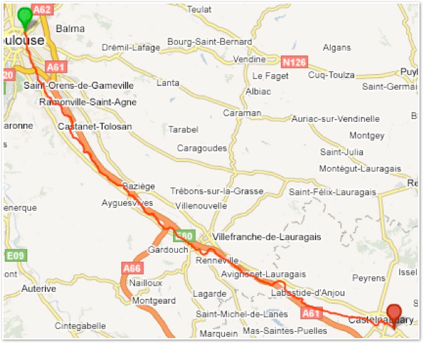 Toulouse - Castelnaudary 65,5 (+2)km Radlzeit 4h34m Gesamt 5h37m ∅ 14km/h