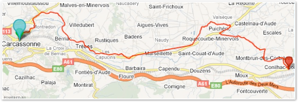 Carcassone nach Conilhac-Corbieres 42,5km 3h40m Gesamtzeit 4h 20 m ∅