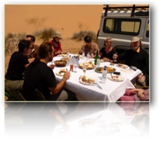 Kurz nach 8 h Frühstück im Haupttrakt des ehemaligen Lazarettes - übrigens stehen an den Korridortüren immer noch deutsche Städtenamen in Kursivschrift. Der Frühstücksraum verfügt über den Charme meines Internates aus den 50iger Jahren. Sehr aufmerksam ist der farbige mittelalterliche Ober im knallgelben, zu engen Pullunder. Wir verlassen die Herberge um 9 h , wieder zurück nach Walvis-Bay. Dort pünktlich um 10 h Start der Dünenralley mit einem smarten jungen Guide im Cowboylook. Es erwarten uns 8 Stunden einer grossartigen Fahrt im Rover, zuerst an der Küste entlang, dann die Dünen rauf und runter. An Tieren gibt es zu sehen: Flamingos, Kormorane, riesige Robbenkolonien, Wüstenschakale u.v.a.m. Dazu gibt es ausführliche Erklärungen Eine riesige Salinenanlage wäre noch zu erwähnen. Jetzt schraubt sich der Rover langsam höher in die Dünen. Etwa um 13 h wird in einer hochgelegenen Oase angehalten. Während die Gäste sich die Beine vertreten, stellt unser Führer mit seinem Bruder in Windeseile an windgeschützter Stelle ein Lunch vom Feinsten auf die Beine. Auf weissem Damast sind Sekt, frische Austern, köstliche Salate etc. angerichtet, zum Abschluss noch Kaffee. Mit einem französischen Paar und drei jungen Spaniern kommen wir schnell ins Gespräch. Im Anschluss daran heißt es wieder einsteigen und nun frisst sich der Jeep förmlich in die immer höher werdenden Dünen.